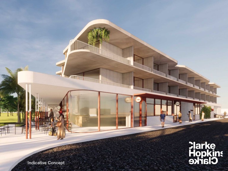 The site of Inverloch Marine on the Esplanade is for sale and is expected to sell for at least $4 million. An architect believes the site could accommodate a three-storey complex with a supermarket or retail strip, 56 apartments, 66 car parking spaces and an infinity pool.