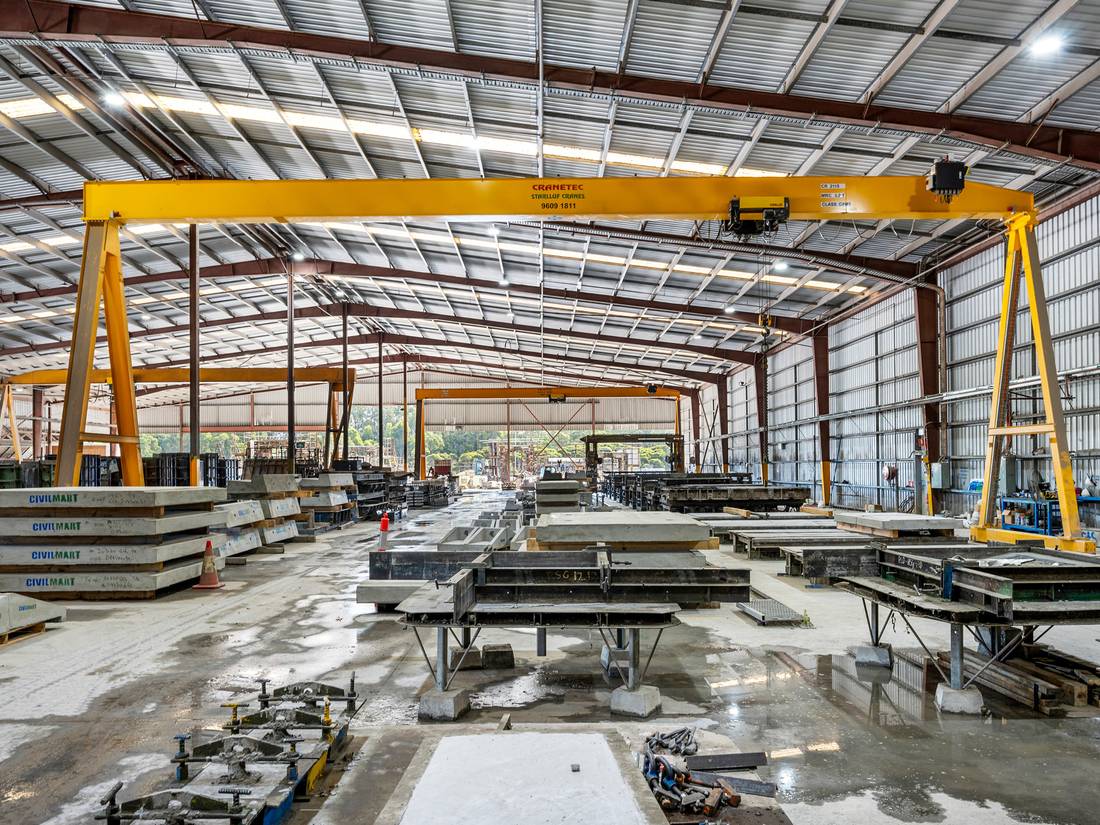 + The site features a single-level warehouse and a double-storey office, designed to Civilmart’s latest corporate standards, with a mix of full-height and half-height walls that provide seamless access to exterior hardstand areas and storage facilities, as well as heavy-duty reinforced concrete floors to support efficient machinery movement.
