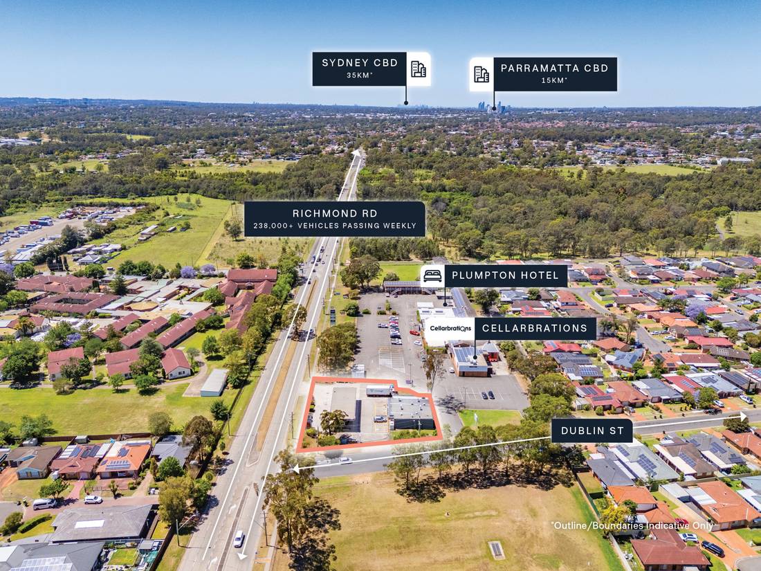 + High profile 1,877sqm* corner site adjacent to iconic Plumpton Hotel with over 93 metres of dual street frontage to 238,000+ vehicles passing weekly on Richmond Road¹