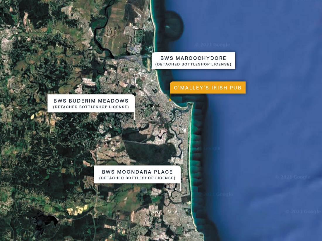 The O’Malley’s tavern license is critical to Endeavour Group’s retail liquor network across the Sunshine Coast, providing three detached bottle shop licenses for nearby BWS stores in Maroochydore, Buderim and Wurtulla.