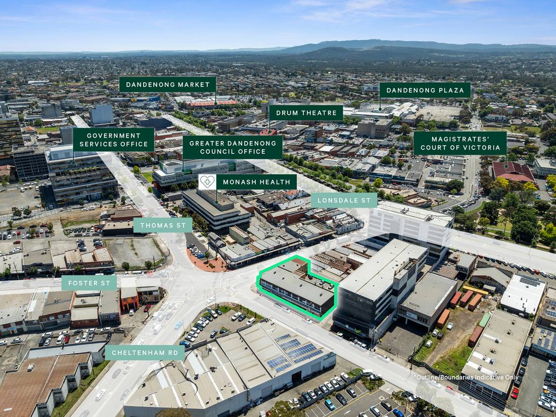+ Significant 1,185sqm corner freehold on busy main road intersection, with expansive 70.2m* triple street frontage to busy Foster Street (with 21,900 VPD*), Thomas Street and Cheltenham Road.