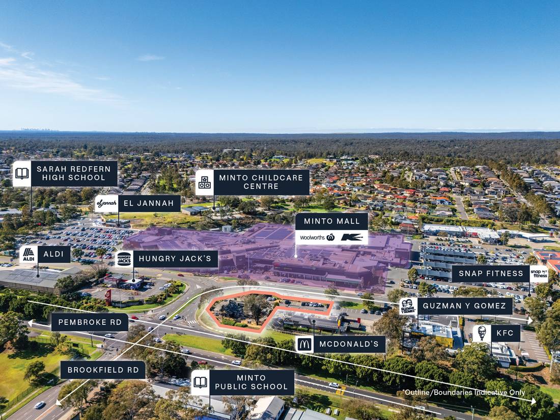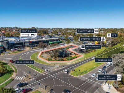 + Prominent gateway position directly opposite Minto Mall, anchored by Kmart & Woolworths with 60+ specialty retailers