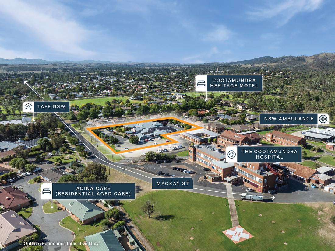 + Strategically located in Cootamundra’s main medical and healthcare precinct directly neighbouring The Cootamundra Hospital and Adina Care (aged care)