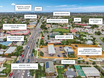 + Strategic 1,911sqm* corner site with 84* metres of frontage to Ferrier Street and busy Anzac Avenue, with exposure to over 19,000+ vehicles passing daily.**