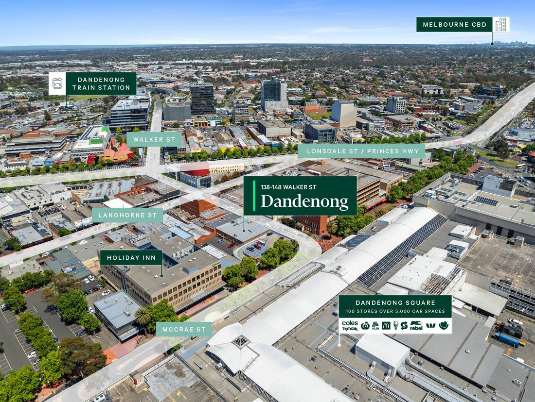 + Valuable Dandenong CBD position, benefitting from excellent pedestrian foot traffic with direct proximity to Dandenong Plaza Shopping Centre and The Dandenong Hub Arcade