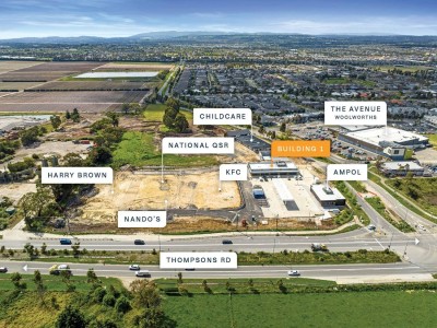 The site features a corner position at signalised intersection with main road frontages to Thompsons Road and William Thwaites Boulevard, with easy access from major arterials. It’s also located across the road from The Woolworth’s anchored Avenue Village Shopping Centre.