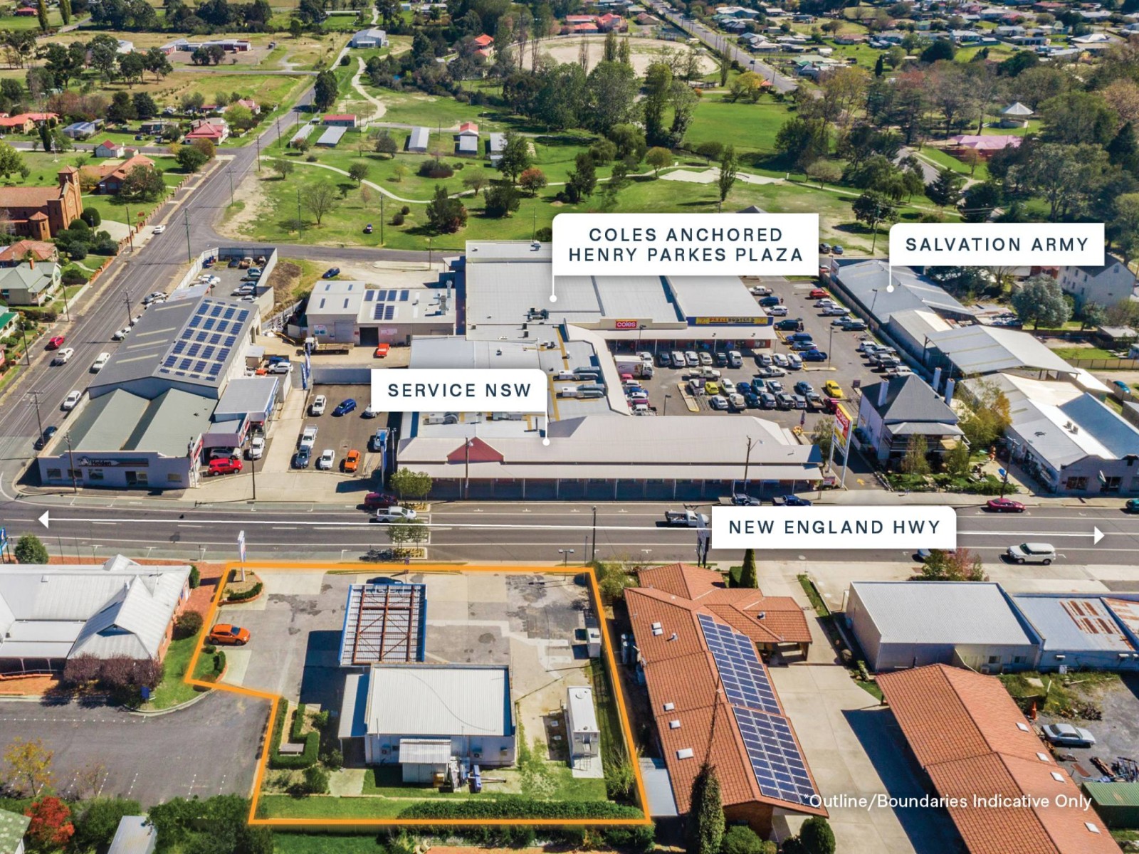 + Important 1,566sqm* highway site in CBD opposite Henry Parkes Plaza (anchored by Coles & Service NSW)