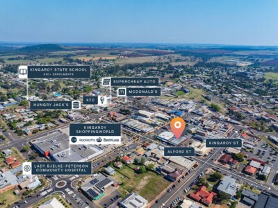 + Prominently positioned opposite Kingaroy’s main shopping centre – Kingaroy Shopping World, anchored by major retailers Woolworths, Big W, Best & Less & supported by over 40 specialty stores