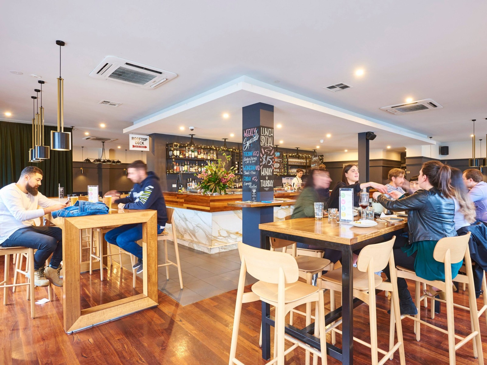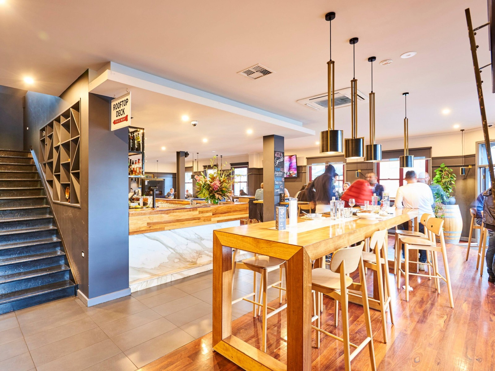 Fully renovated providing multiple seating areas including rooftop deck and function areas