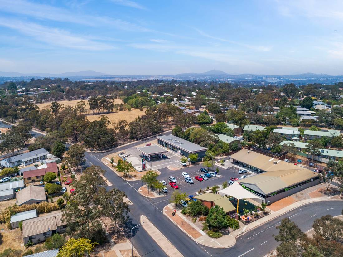 Popular convenience precinct 11 km north west of Canberra CBD, directly opposite shopping centre with independent supermarket, bakery, butcher, pharmacy, physio and 38 car spaces.