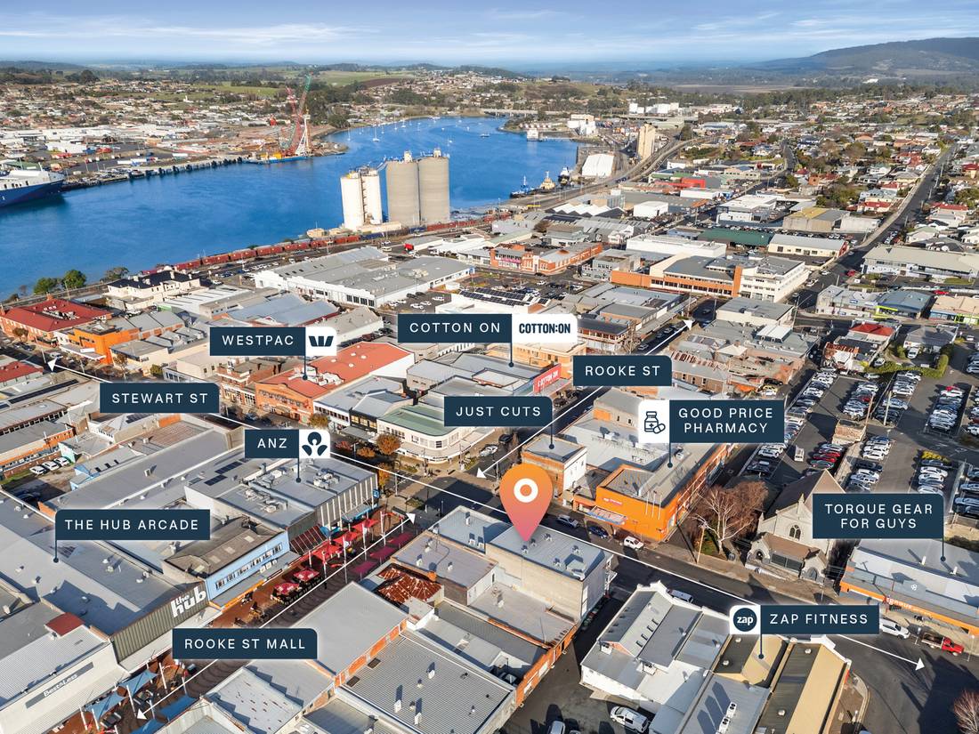 + Strategically positioned on the corner of the Rooke Street Mall in the CBD of Devonport, which is one of the dominant retail strips of North West Tasmania.