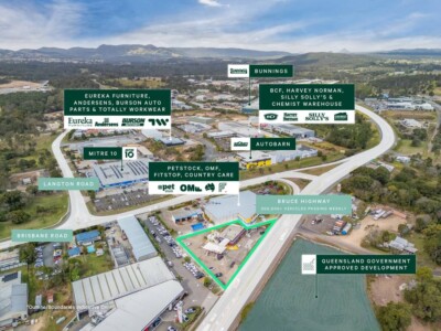 + Located at the gateway to Gympie’s new commercial precinct with multiple developments in construction leased to national operators Auto Masters, Pet Barn, Pillow Talk, Rebel, Eureka Furniture, Silly Solly’s & Country Care