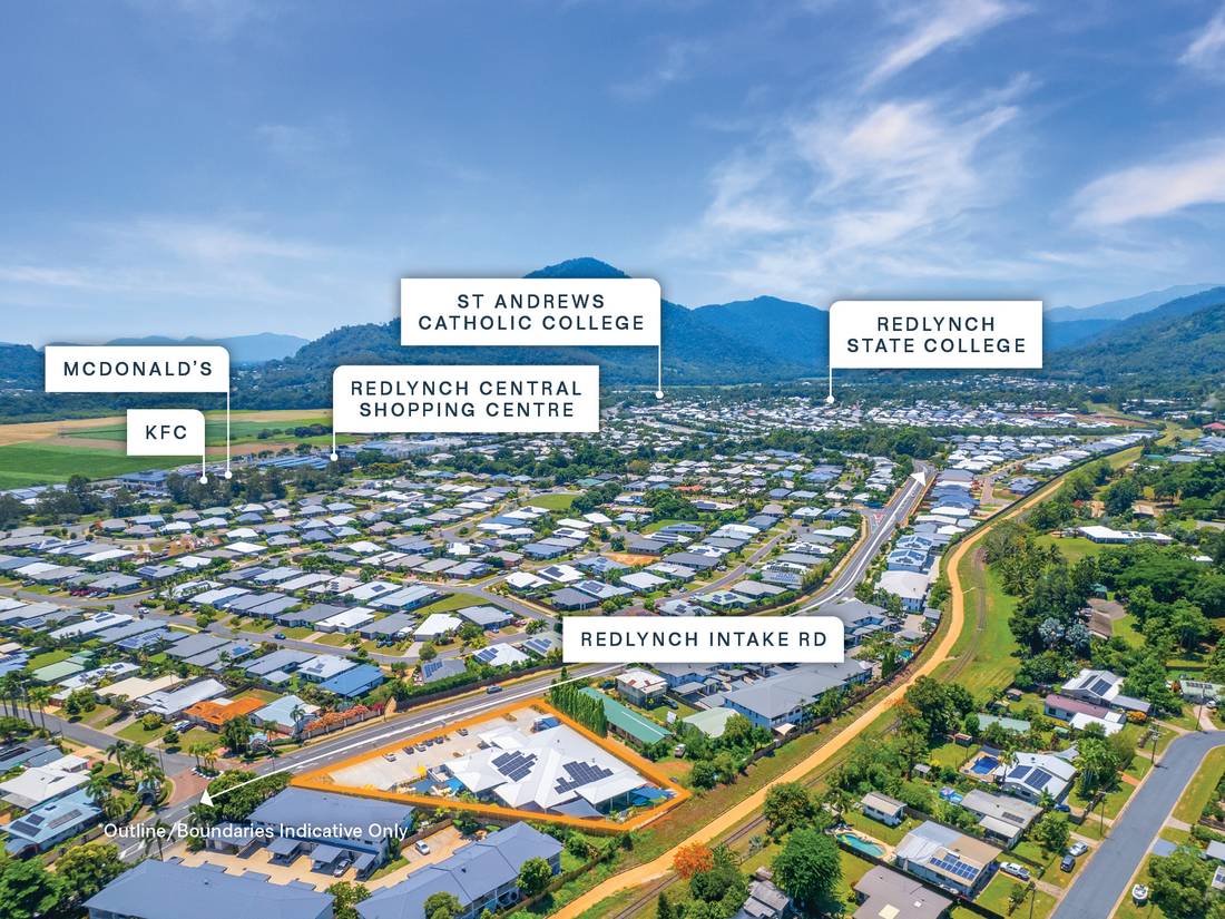 +Strategic 3,042sqm* site positioned only 600 metres from the Coles anchored Redlynch Shopping Centre and within metres of the Cairns Western Arterial providing direct access to the Cairns CBD (8.2km)