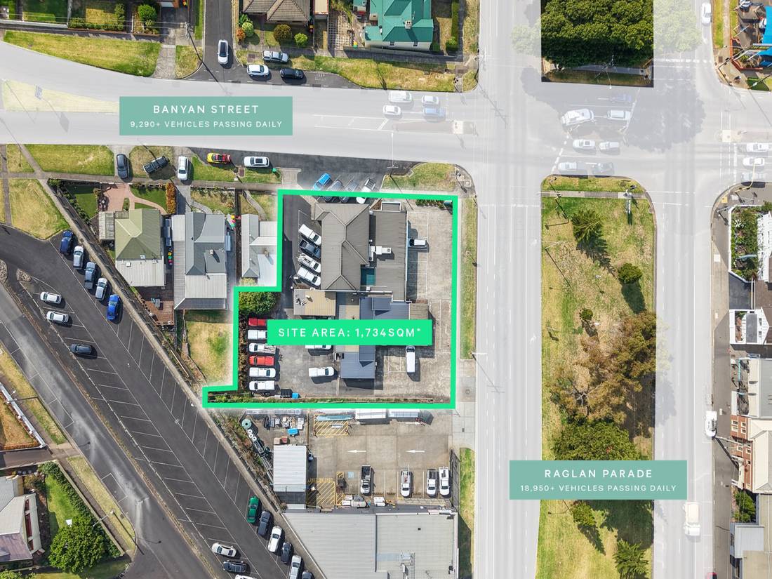 + Prime 1,734sqm* main road freehold landholding with important 76.8m* dual frontage and exposure to 28,000+ passing vehicles daily via Raglan Parade and Banyan Street. (2)