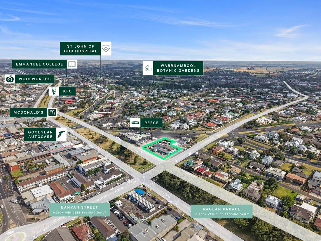 + High profile Warrnambool CBD location with Coles, Woolworths, ALDI, Target, McDonald’s, KFC, Reece Plumbing and Repco all within 715m.*