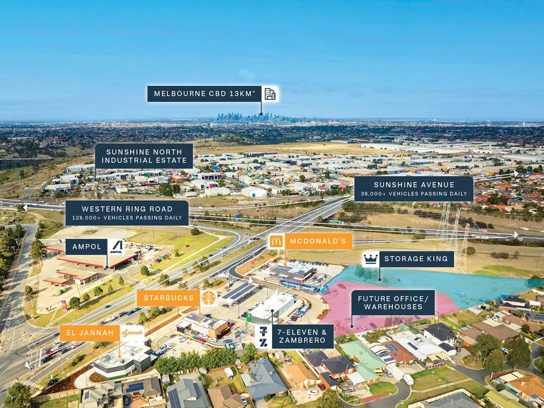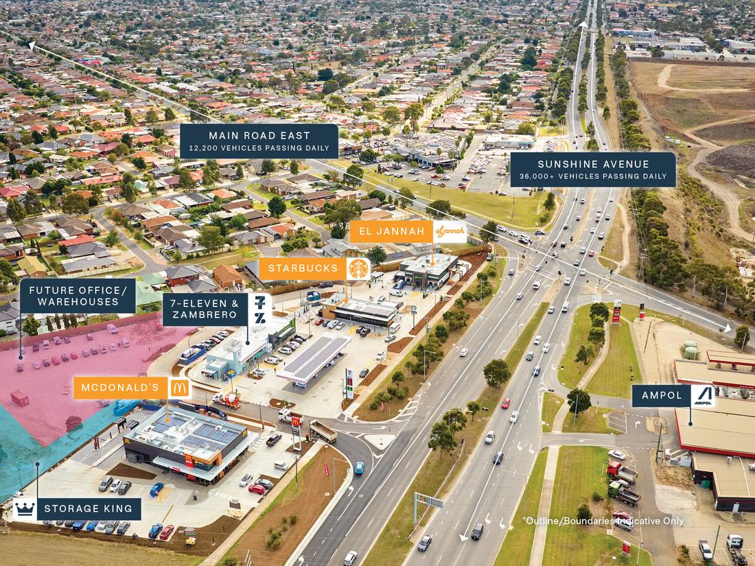 + St Albans Convenience Retail Centre: premium fast food and convenience retail centre completed in 2025, perfectly positioned on the homebound side of Sunshine Avenue.