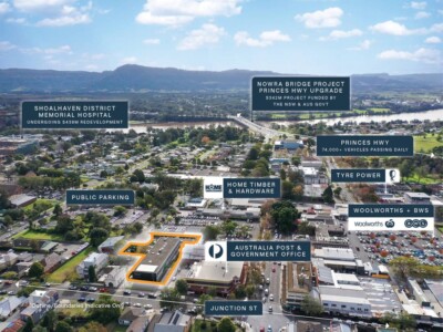 + Strategic position in the heart of Nowra’s CBD, adjacent Australia Post, neighbouring Woolworths, Nowra Plaza Shopping Centre & 1km* to Shoalhaven District Hospital