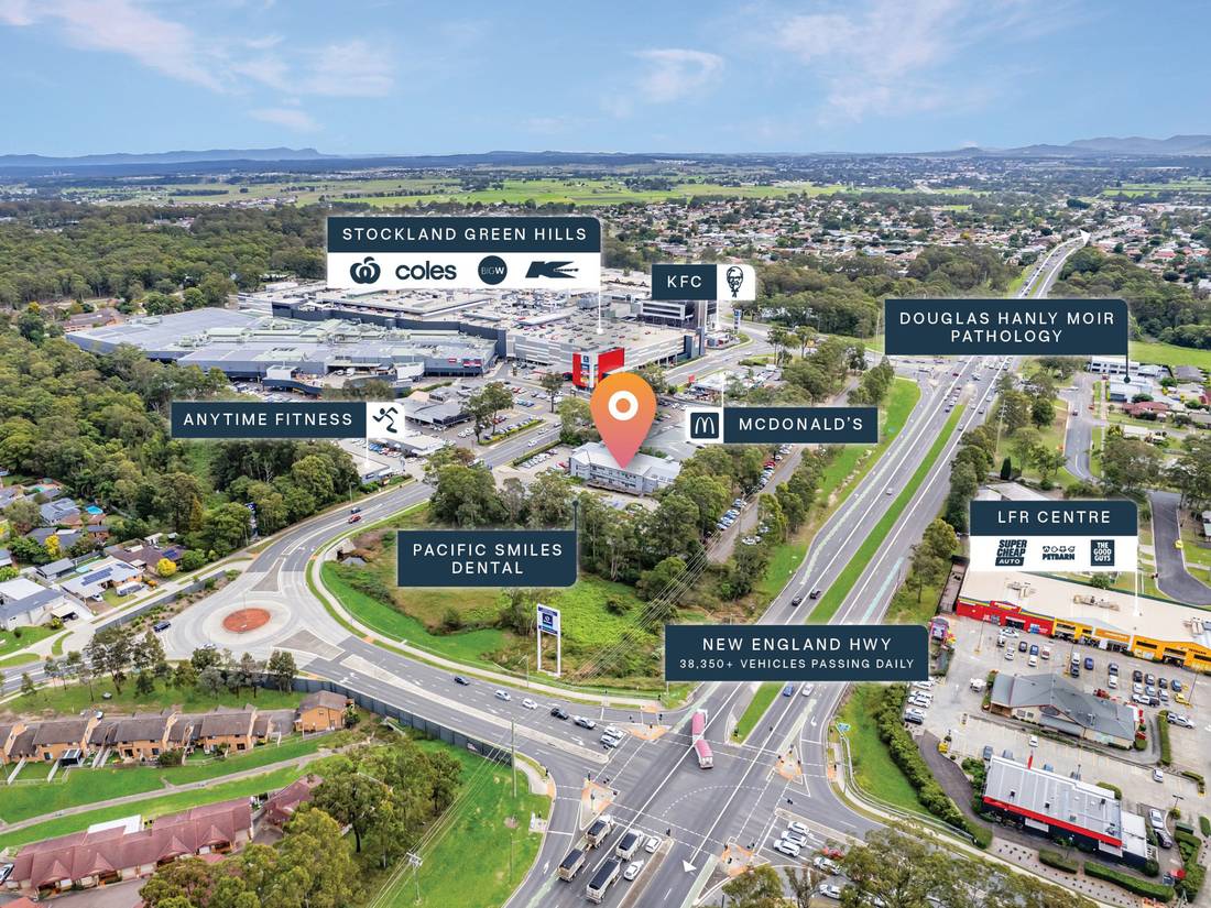 + Strategic location opposite Stockland Green Hills with close proximity to McDonald’s, KFC, Dan Murphy’s, Maitland Hospital and Maitland Private Hospital