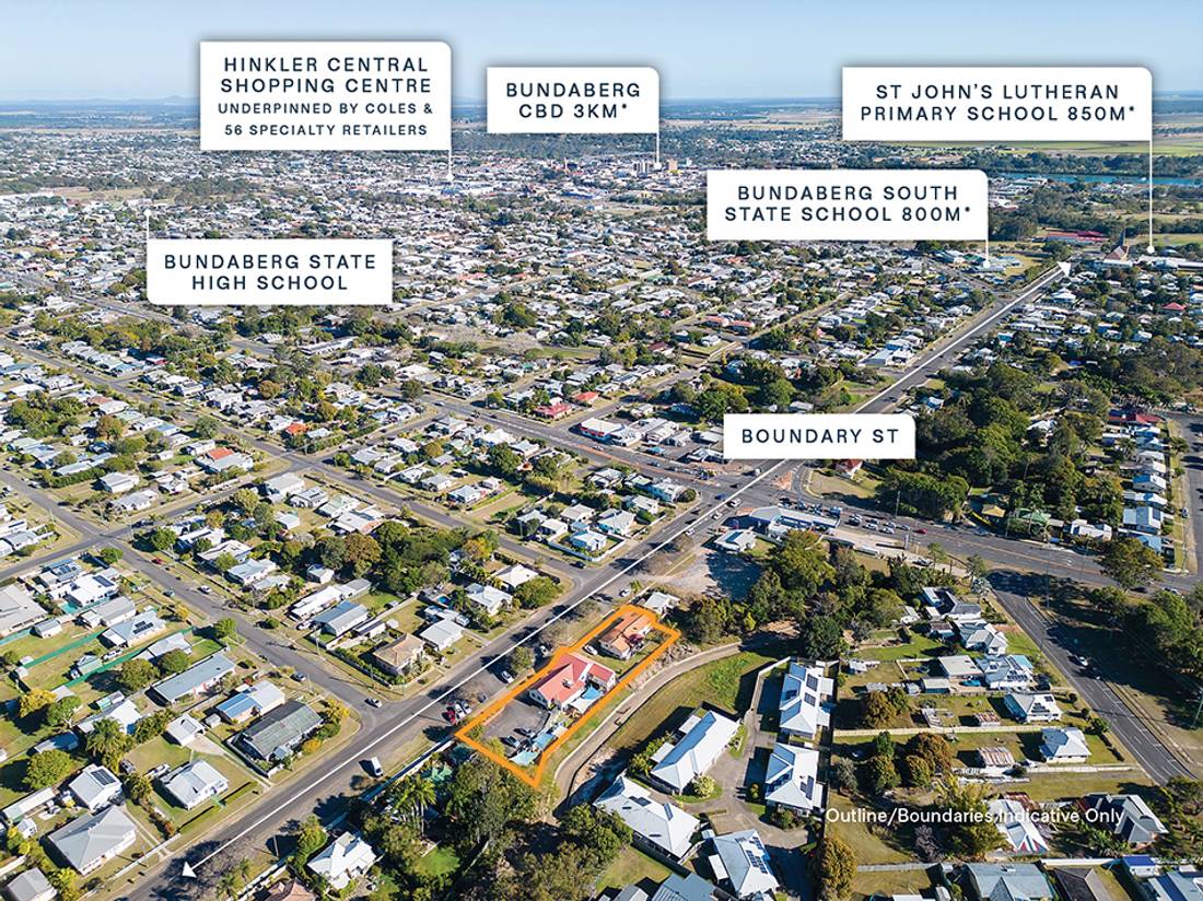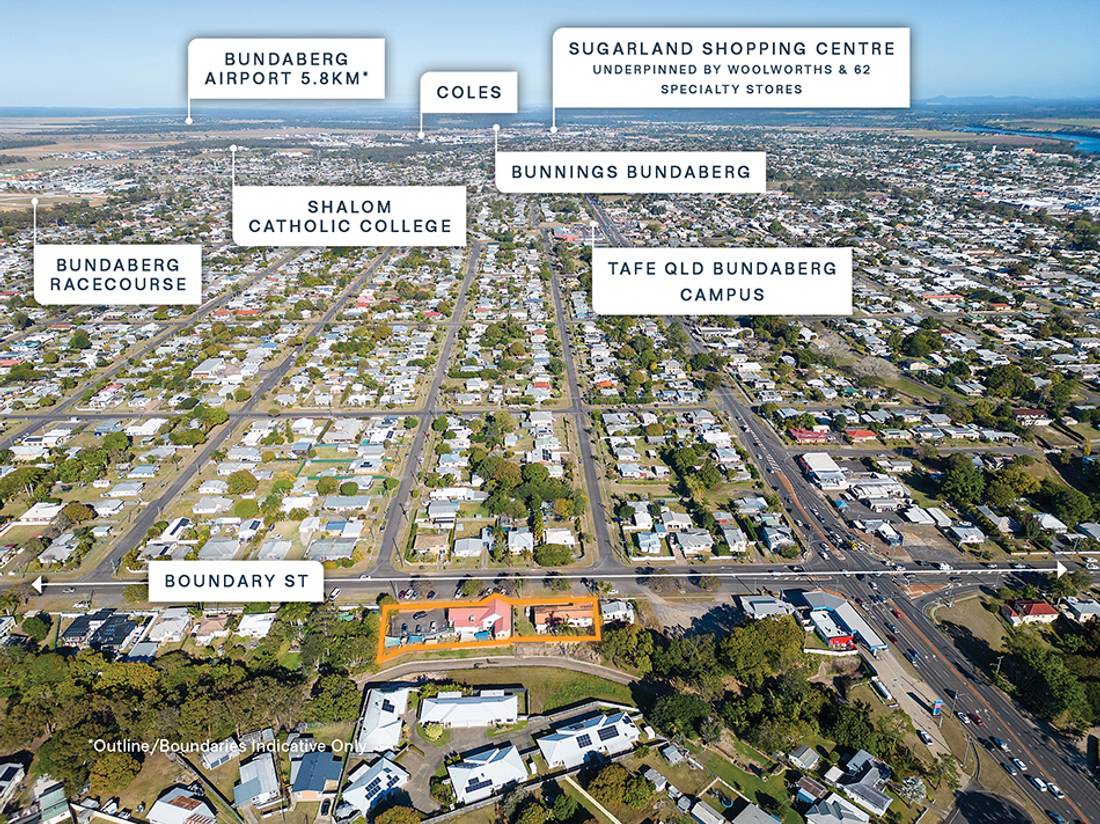 + Conveniently located 2km* from Bundaberg’s major retail & commercial amenities including national tenants, McDonald’s, IGA, Aldi, Target, and Hinkler Central Shopping Centre, underpinned by Coles, Kmart, Liqourland, and 56 specialty retailers