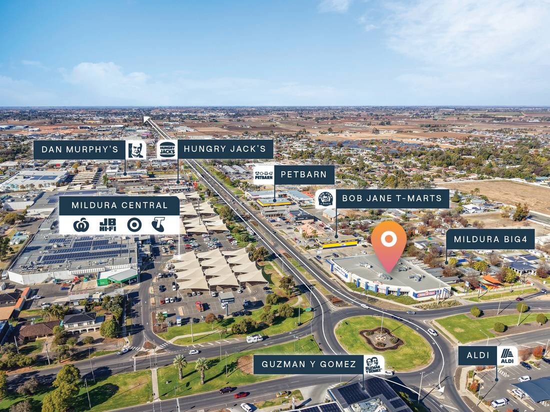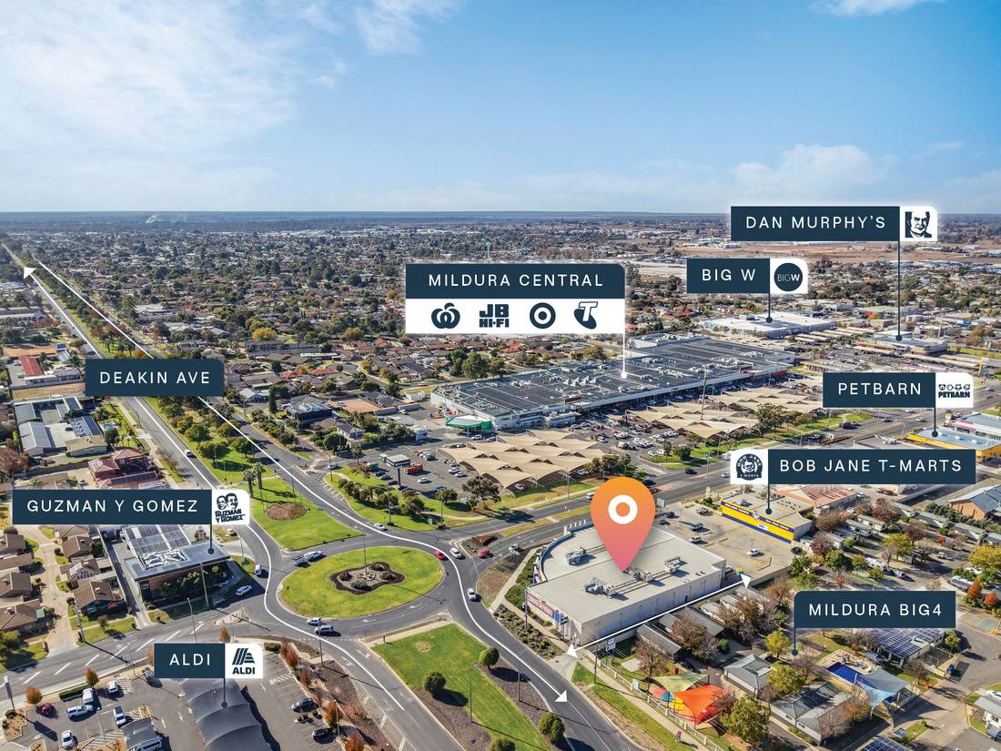 + Rear laneway access Located opposite Mildura Central Shopping Centre and surrounded by major national retailers including Woolworths, ALDI, Big W, Dan Murphys, and JB Hi-Fi, this is a rare chance to secure exceptional visibility and positioning in a tightly held growth corridor. Contact the exclusively appointed agents today to arrange an inspection or request further details..