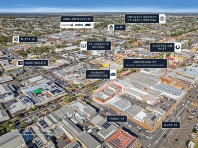 + Strategically located on Bundaberg’s major retail and commercial high street & only 1km* from Hinkler Central Shopping Centre, anchored by major national retailers Woolworths, Kmart, Coles & 60 specialty stores
