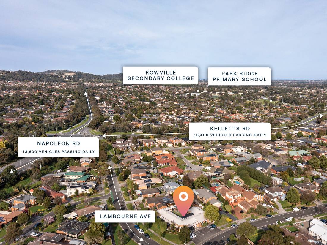 +1,465sqm* corner site, conveniently positioned metres from Kelletts/Napolean Road Juncture, supporting 30,000+ vehicles per day, offering direct access Wellington Road, a major arterial linking to the Monash Freeway.**